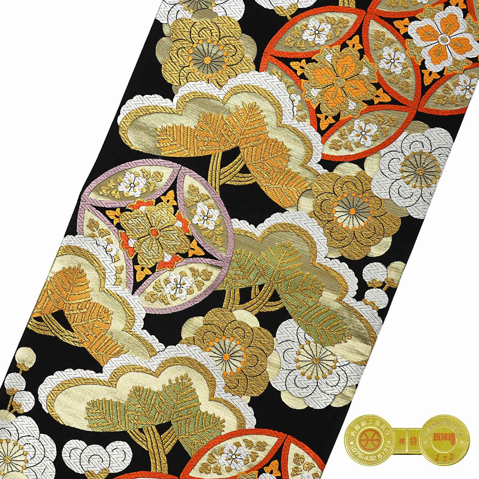 他の画像を見る 送料無料 華やかな振袖帯 袋帯 お手持ちの振袖、ママ振・姉振に合わせて 振袖 袋帯 単品「黒地 七宝に梅松」日本製 西陣織 西陣織証紙番号 No.172 岡文織物株式会社 六通柄 お仕立て上がり 振袖用 袋帯 お仕立て済 振袖帯 結婚式 成人式 フォーマル【メール便不可】 きもの町価格 ¥ 39,800 税込 カートに入れる お気に入りに登録する