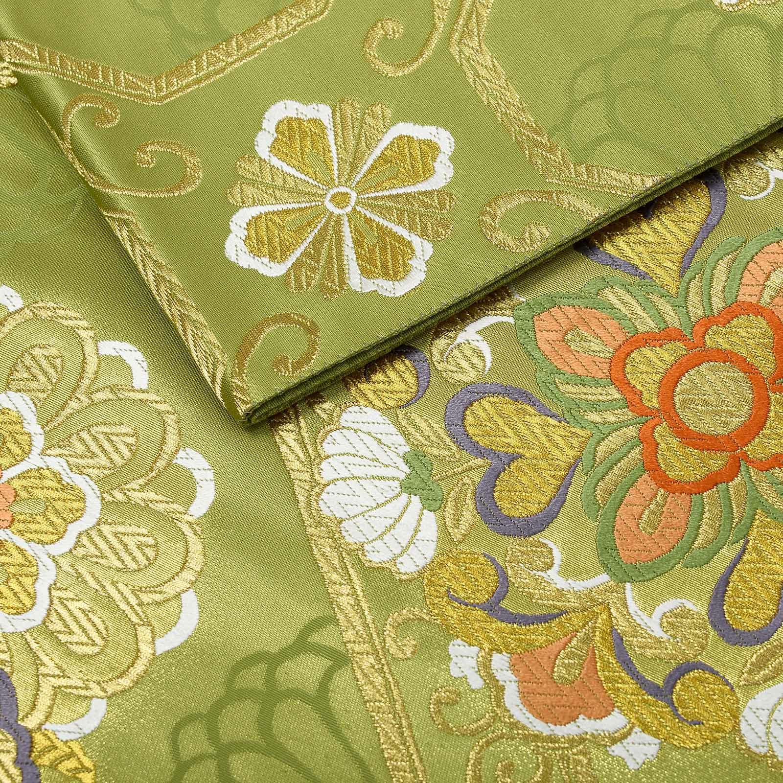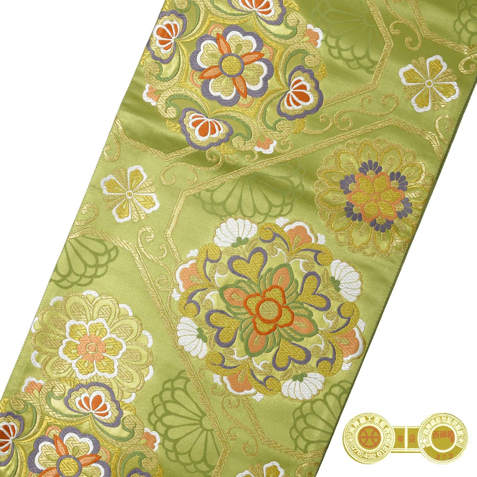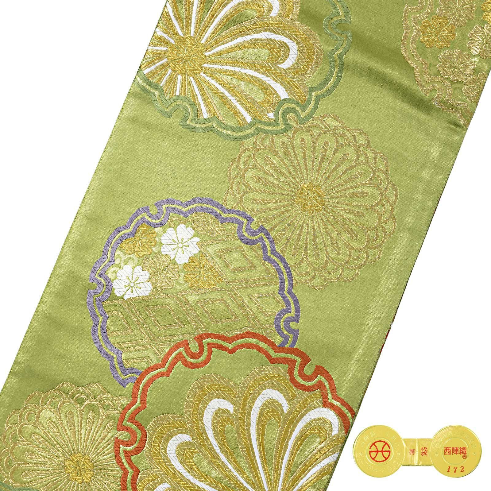 他の画像を見る 送料無料 華やかな振袖帯 袋帯 お手持ちの振袖、ママ振・姉振に合わせて 振袖 袋帯 単品「抹茶色 菊に雪輪」日本製 西陣織 西陣織証紙番号 No.172 岡文織物株式会社 六通柄 お仕立て上がり 振袖用 袋帯 お仕立て済 振袖帯 結婚式 成人式 フォーマル【メール便不可】 きもの町価格 ¥ 39,800 税込 カートに入れる お気に入りに登録する