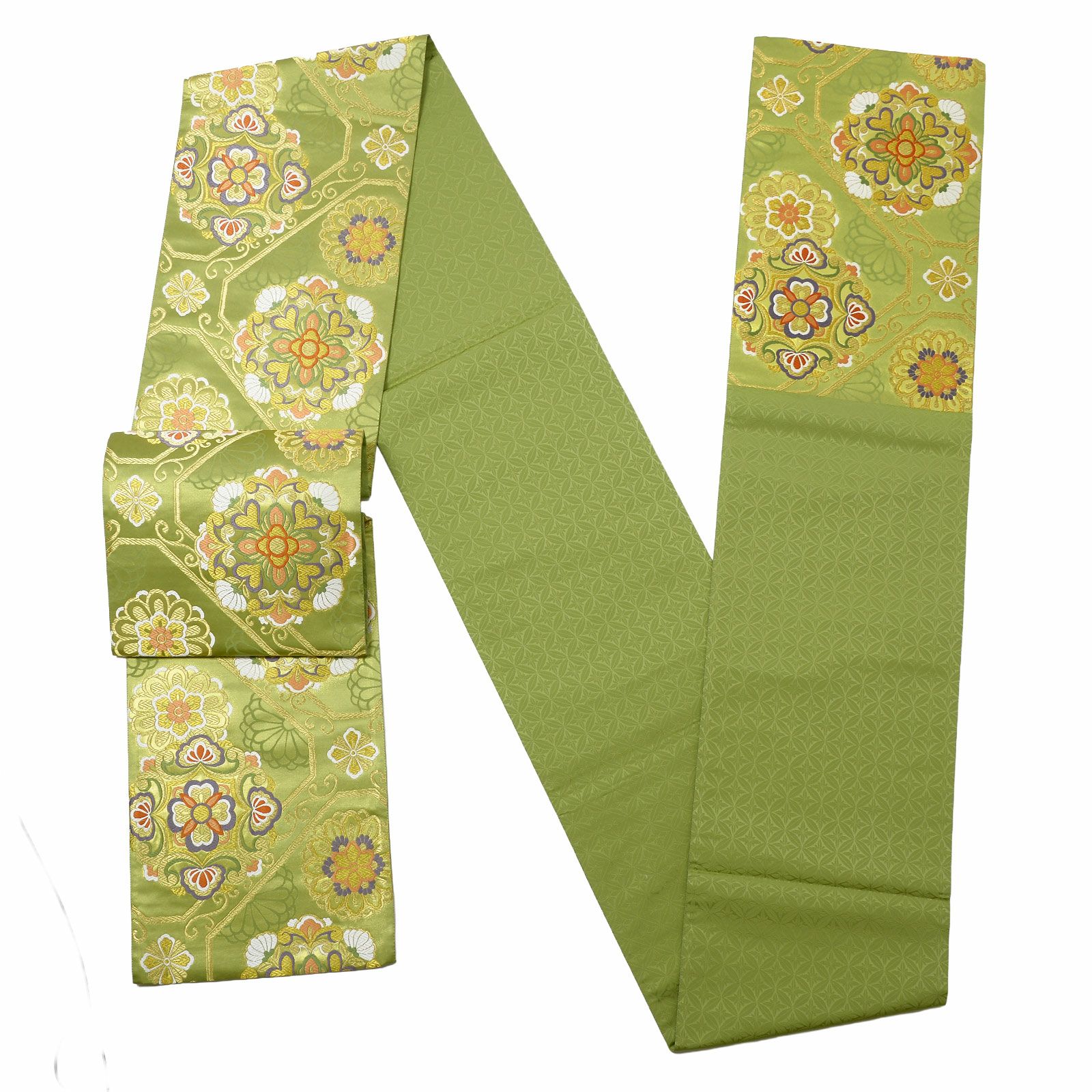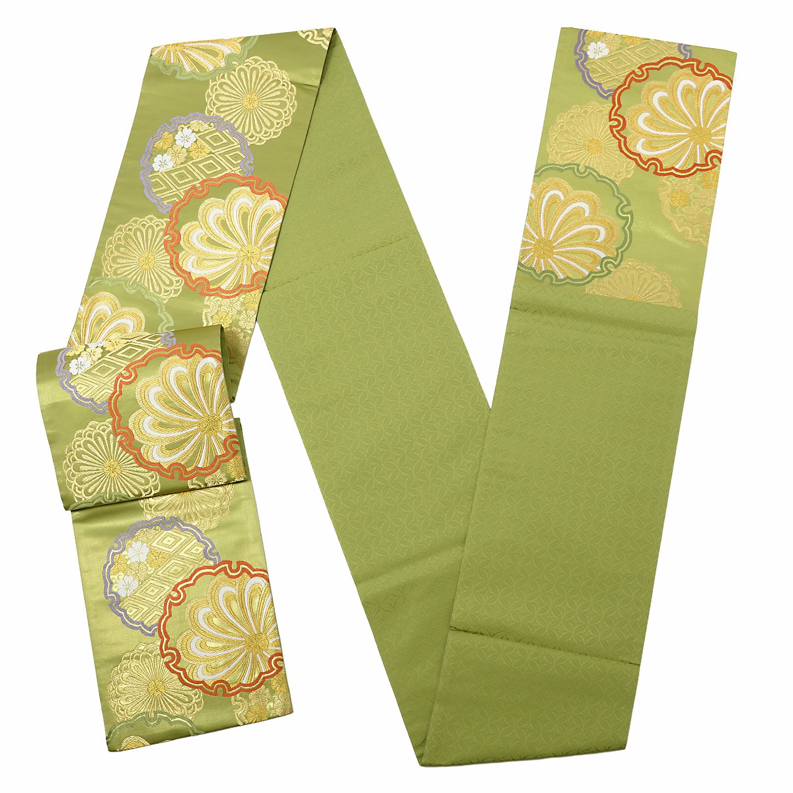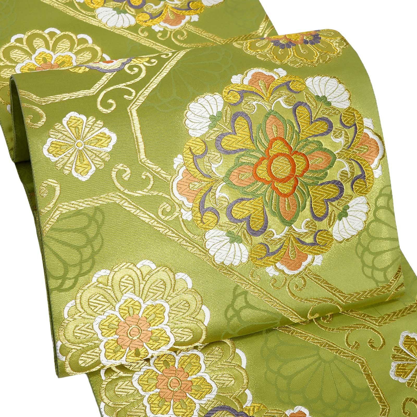 他の画像を見る 送料無料 華やかな振袖帯 袋帯 お手持ちの振袖、ママ振・姉振に合わせて 振袖 袋帯 単品「抹茶色 菊に雪輪」日本製 西陣織 西陣織証紙番号 No.172 岡文織物株式会社 六通柄 お仕立て上がり 振袖用 袋帯 お仕立て済 振袖帯 結婚式 成人式 フォーマル【メール便不可】 きもの町価格 ¥ 39,800 税込 カートに入れる お気に入りに登録する