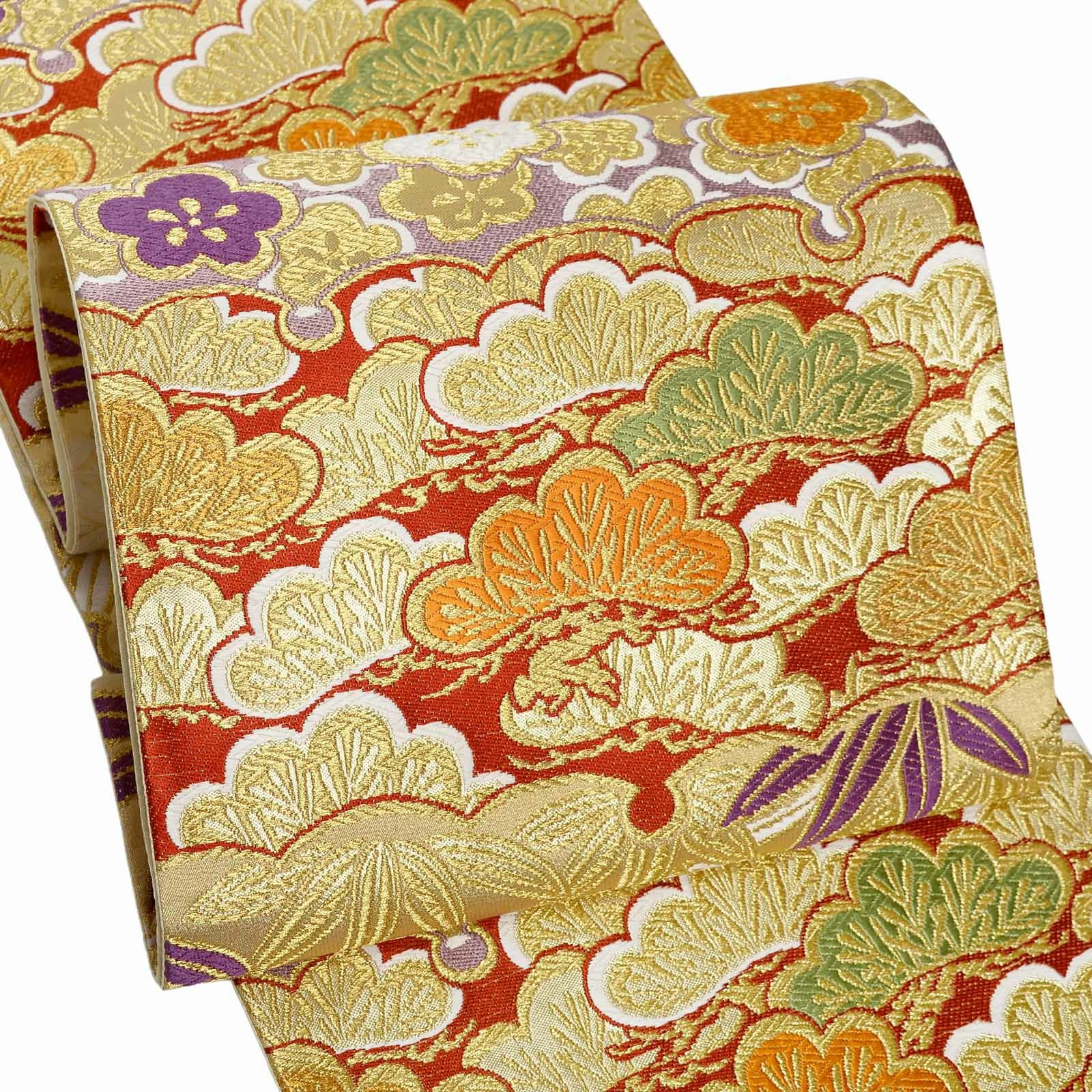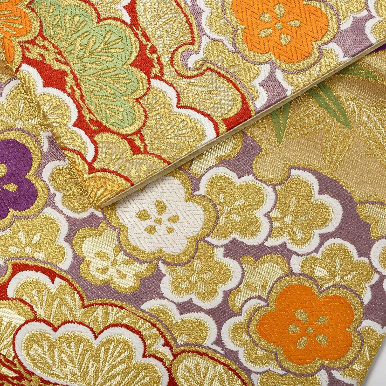 他の画像を見る 送料無料 華やかな振袖帯 袋帯 お手持ちの振袖、ママ振・姉振に合わせて 振袖 袋帯 単品「ゴールド 雪輪取りに松竹梅」日本製 西陣織 西陣織証紙番号 No.172 岡文織物株式会社 六通柄 お仕立て上がり 振袖用 袋帯 お仕立て済 振袖帯 結婚式 成人式 フォーマル【メール便不可】 きもの町価格 ¥ 39,800 税込 カートに入れる お気に入りに登録する