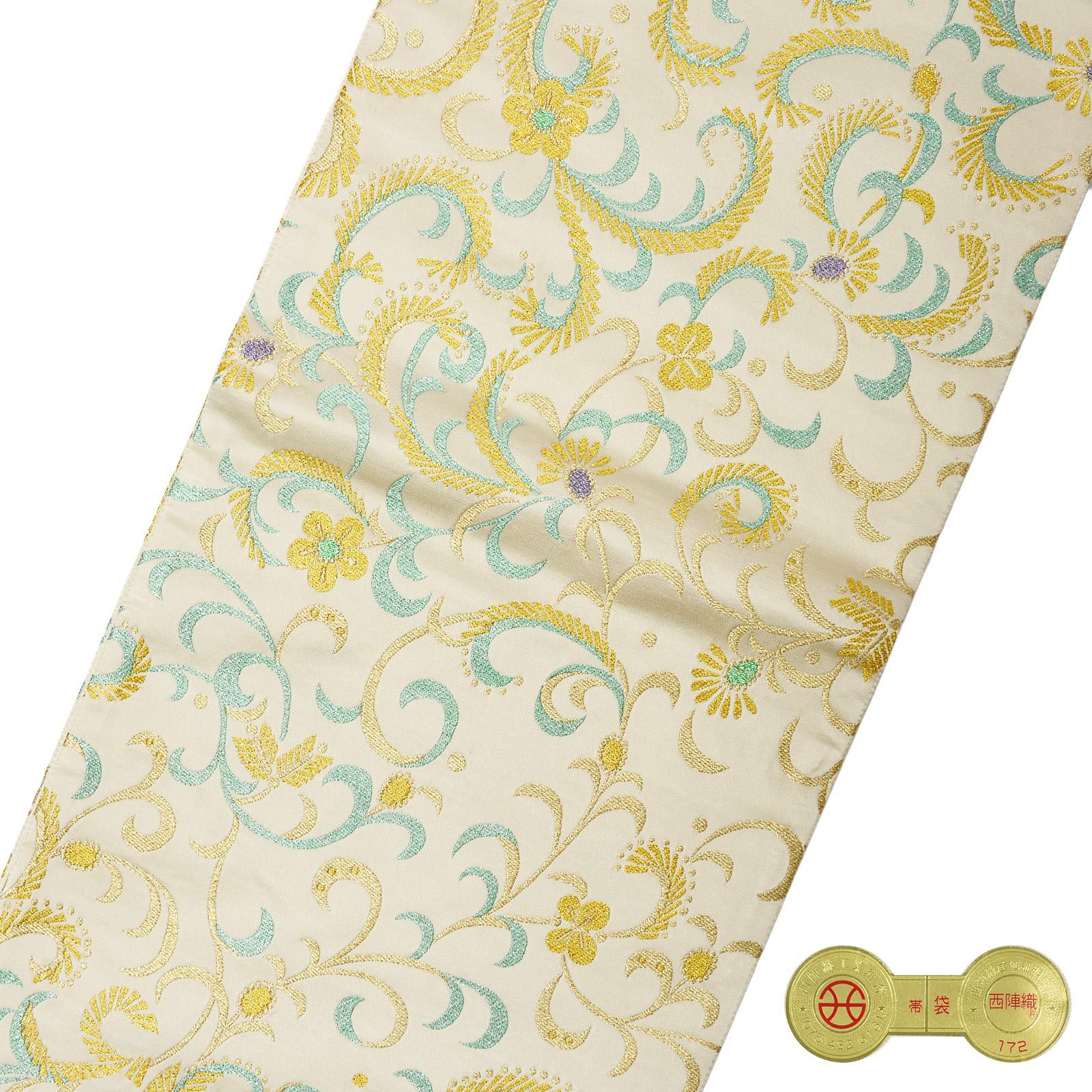 他の画像を見る 送料無料 華やかな振袖帯 袋帯 お手持ちの振袖、ママ振・姉振に合わせて 振袖 袋帯 単品「象牙色 立涌に唐花」六通柄 日本製 西陣織証紙番号 No.172 岡文織物株式会社 お仕立て上がり 振袖用 袋帯 お仕立て済 振袖帯 結婚式 成人式 フォーマル【メール便不可】 きもの町価格 ¥ 39,800 税込 カートに入れる お気に入りに登録する
