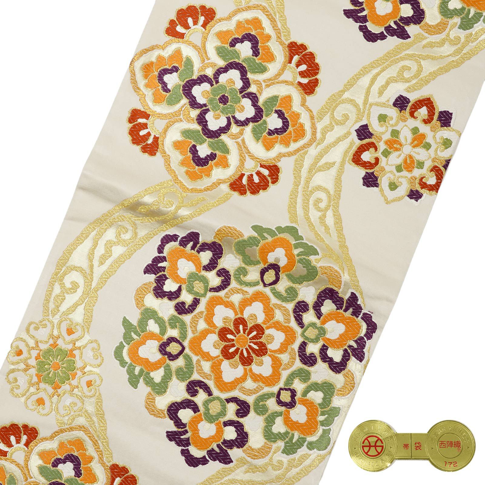 他の画像を見る 送料無料 華やかな振袖帯 袋帯 お手持ちの振袖、ママ振・姉振に合わせて 振袖 袋帯 単品「象牙色 車に唐花」六通柄 日本製 西陣織証紙番号 No.172 岡文織物株式会社 お仕立て上がり 振袖用 袋帯 お仕立て済 振袖帯 結婚式 成人式 フォーマル【メール便不可】 きもの町価格 ¥ 39,800 税込 カートに入れる お気に入りに登録する