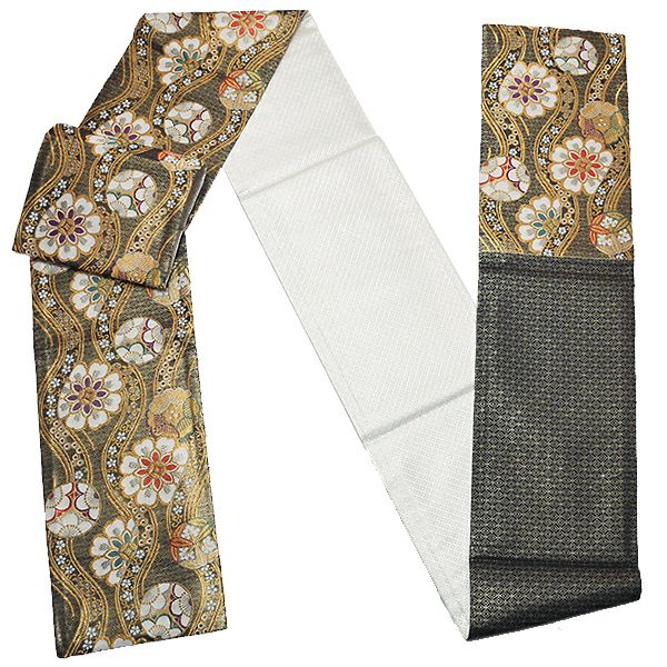 【Prices down3】振袖袋帯「黒色 立涌に花文」お仕立て上がり 振袖帯 六通柄 振袖に 礼装帯 【メール便不可】<T>ss2512ofk30