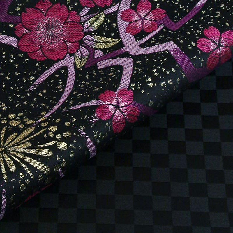5. 【中古品】振袖 帯 振袖用袋帯 「黒 桜」 仕立て上がり 振袖用 礼装用袋帯 ポリエステル 成人式 貸衣装処分 レンタル処分品【メール便不可】ss2512ofk20