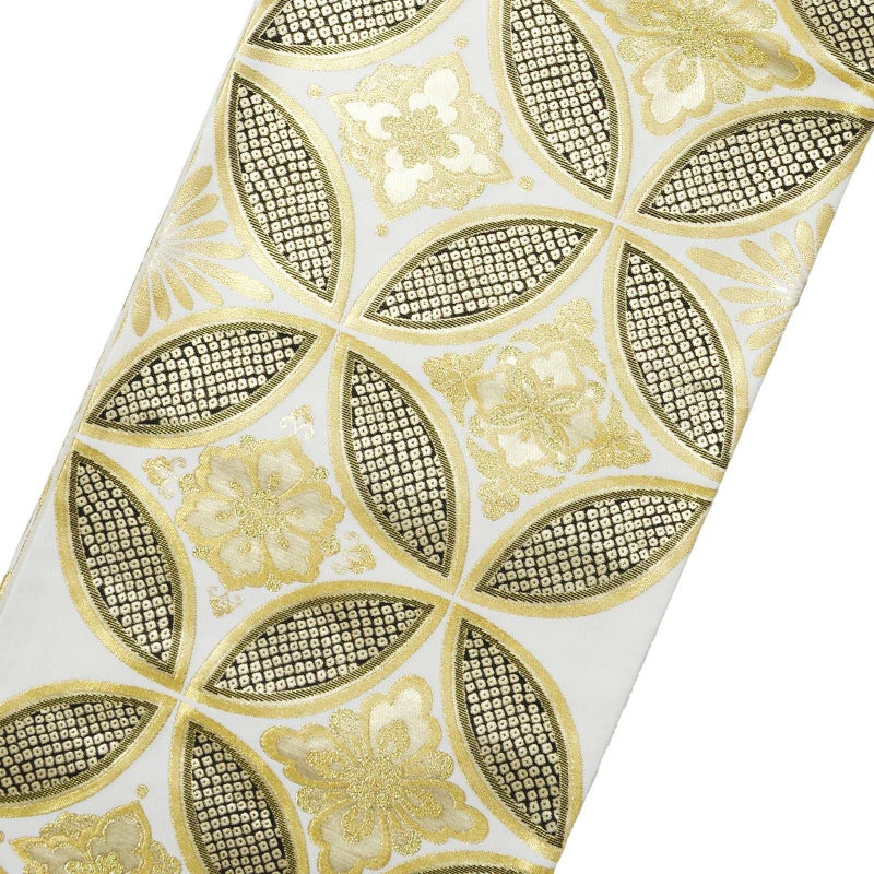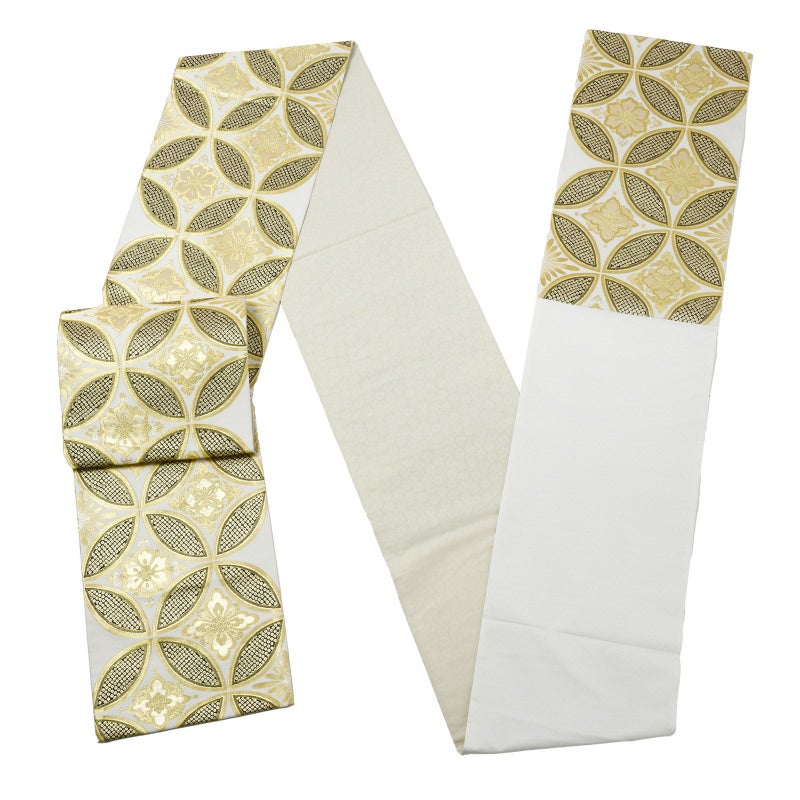 振袖 袋帯 単品「白地、金×黒 花七宝」日本製 お仕立て上がり 振袖用 袋帯 お仕立て済 振袖帯 結婚式 成人式 フォーマル【メール便不可】