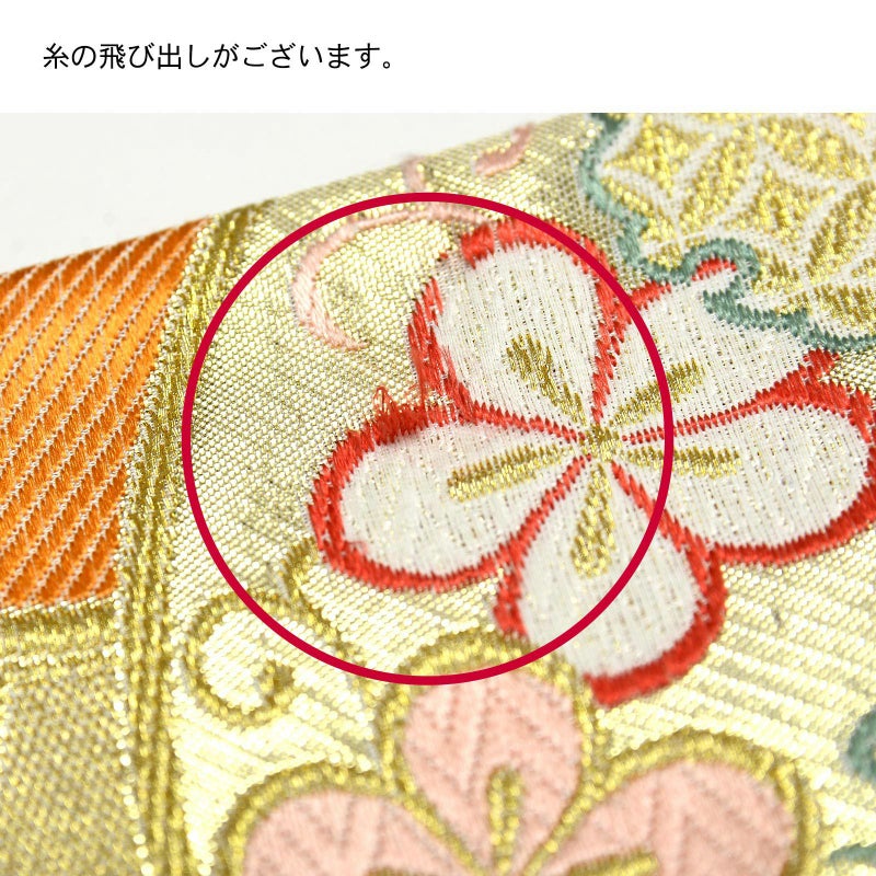 5. 【訳アリ】振袖 袋帯 単品「オフホワイト×ゴールド 源氏車」日本製 未仕立て 振袖用 礼装用袋帯 六通柄 成人式 袋帯 振袖帯【メール便不可】