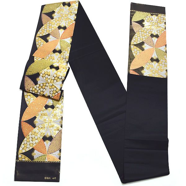 金糸が細かに織り込まれた黒色の重たくなり過ぎない高級感のある帯地。