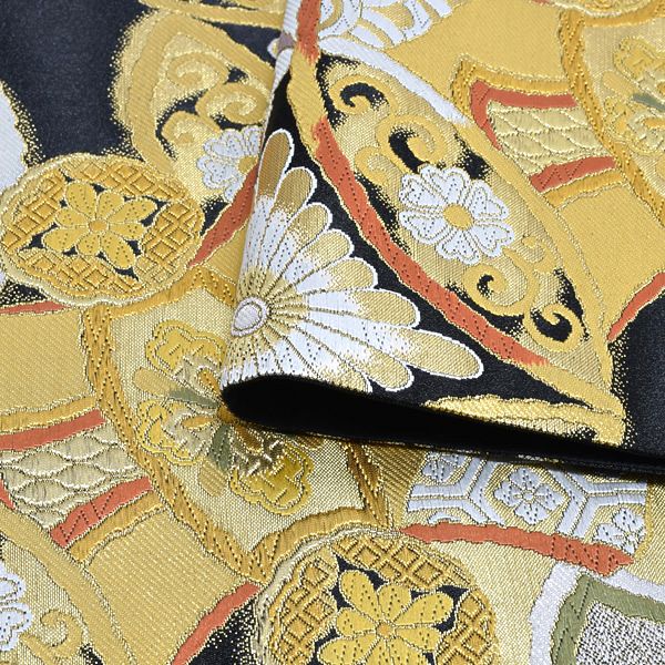 金糸が細かに織り込まれた黒色の重たくなり過ぎない高級感のある帯地。