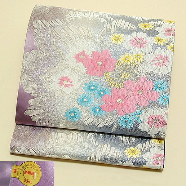 【Prices down2】西陣織袋帯 (株)志都香謹製「ブルー×パープル 大牡丹にお花」(六通柄) 未仕立て[ 袋帯 ] 【メール便不可】<T>ss2509ofr75