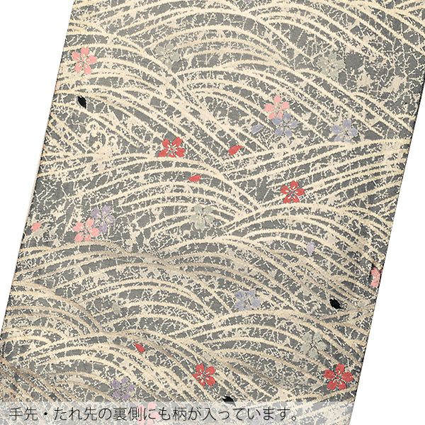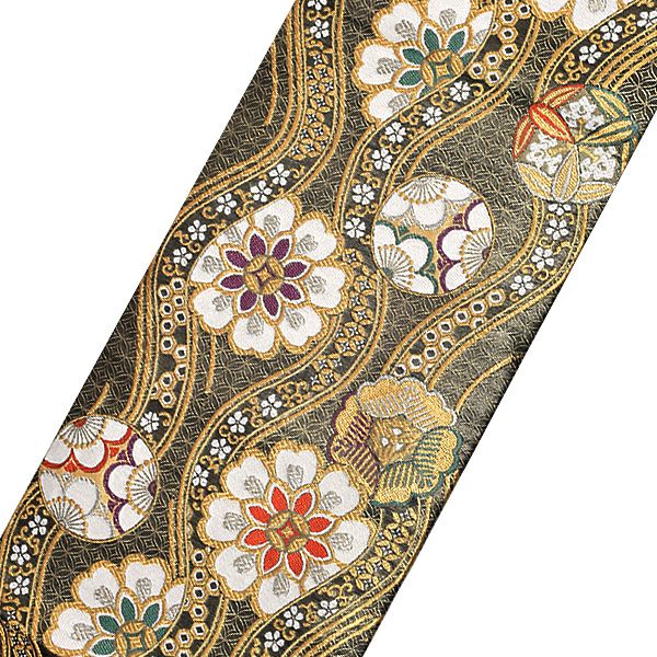 【Prices down3】振袖袋帯「黒色 立涌に花文」お仕立て上がり 振袖帯 六通柄 振袖に 礼装帯 【メール便不可】<T>ss2512ofk30