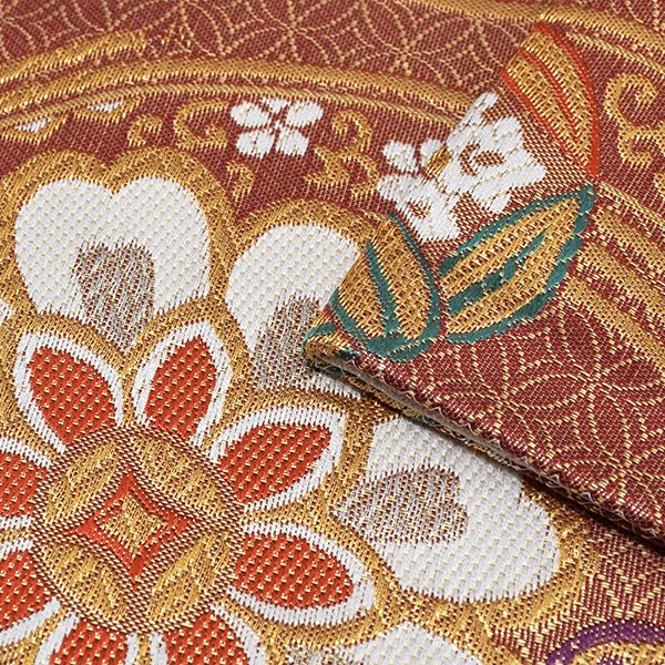 【Prices down3】振袖袋帯「臙脂色 立涌に花文」お仕立て上がり 振袖帯 六通柄 振袖に 礼装帯 【メール便不可】<T>ss2512ofk30