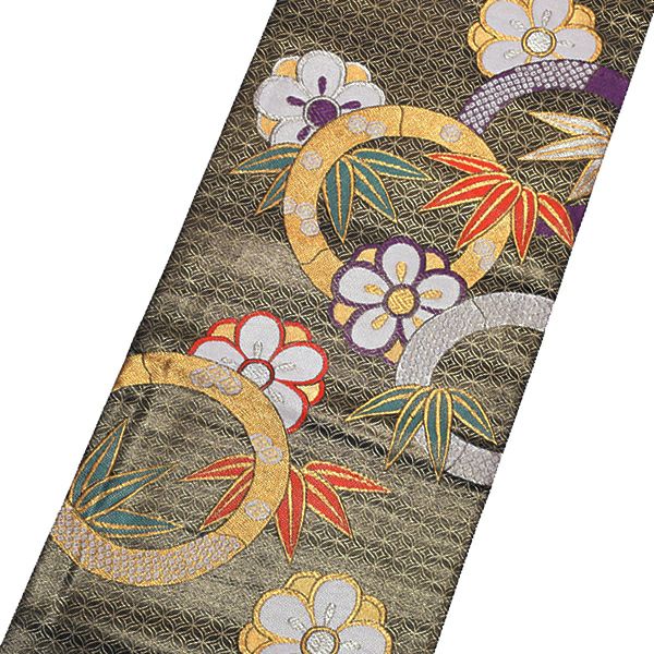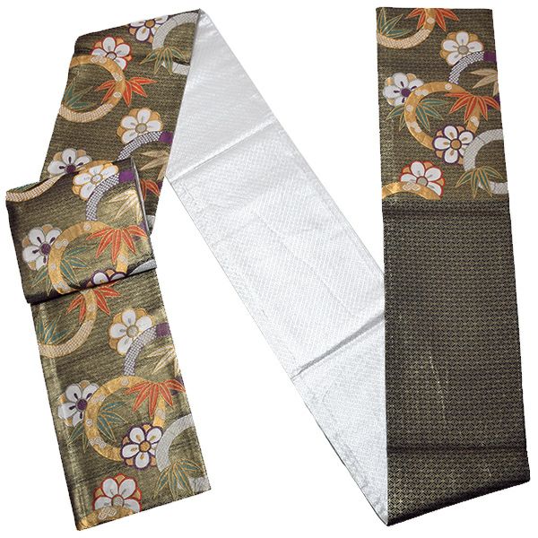 【Prices down4】振袖袋帯「黒色 竹と梅」お仕立て上がり 振袖帯 六通柄 振袖に 礼装帯 【メール便不可】<T>ss2512ofk40