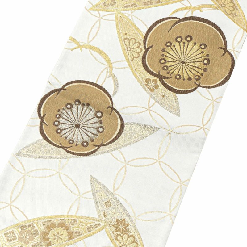 振袖 袋帯 単品「白地、金 輪違いに梅」六通柄 日本製 お仕立て上がり 振袖用 袋帯 お仕立て済 振袖帯 結婚式 成人式 フォーマル【メール便不可】