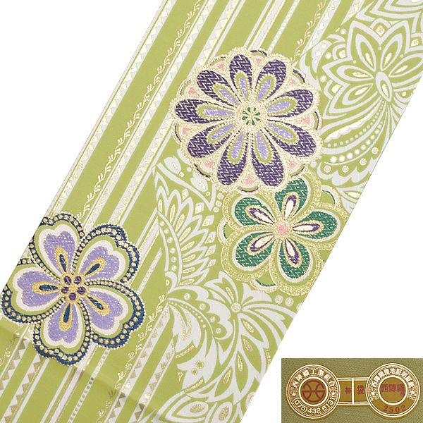 他の画像を見る 送料無料 店頭あり 華やかな振袖帯 袋帯 西陣織 絹帯 お手持ちの振袖、ママ振・姉振に合わせて 【Prices down4】振袖 帯 「黄緑色 蜀江文様と桜」 日本製 西陣織 証紙番号2219 絹 未仕立て 六通柄 振袖用 袋帯 振袖帯 【メール便不可】<T>ss2512ofk30 きもの町価格 ¥ 39,373 税込 カートに入れる お気に入りに登録する