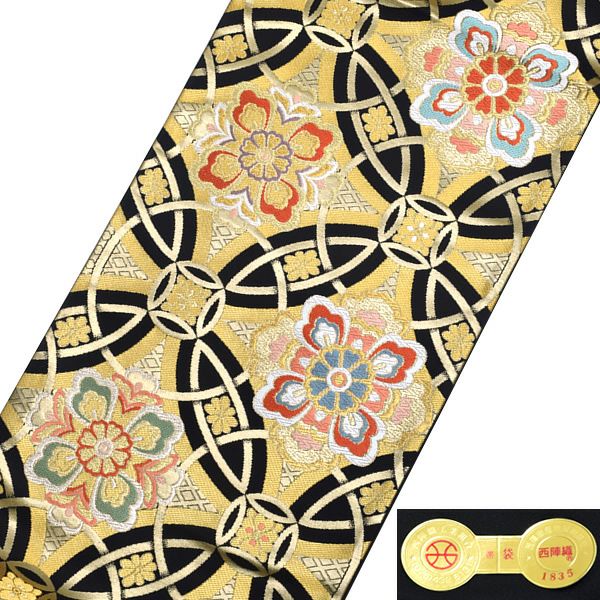 他の画像を見る 送料無料 店頭あり 振袖向けの華やかな袋帯 【Prices down4】振袖袋帯「黒色 七宝くづし華文」未仕立て 京都西陣 六通柄 西陣織 【メール便不可】<T>ss2512ofk40 きもの町価格 ¥ 94,285 税込 カートに入れる お気に入りに登録する