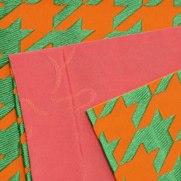 【Prices down2】京都きもの町オリジナル浴衣帯単品「千鳥 橙×緑」小袋帯 半幅帯 ポリエステル ゆかた帯 四寸 <16浴衣帯15>【メール便不可】ss2512oyk70