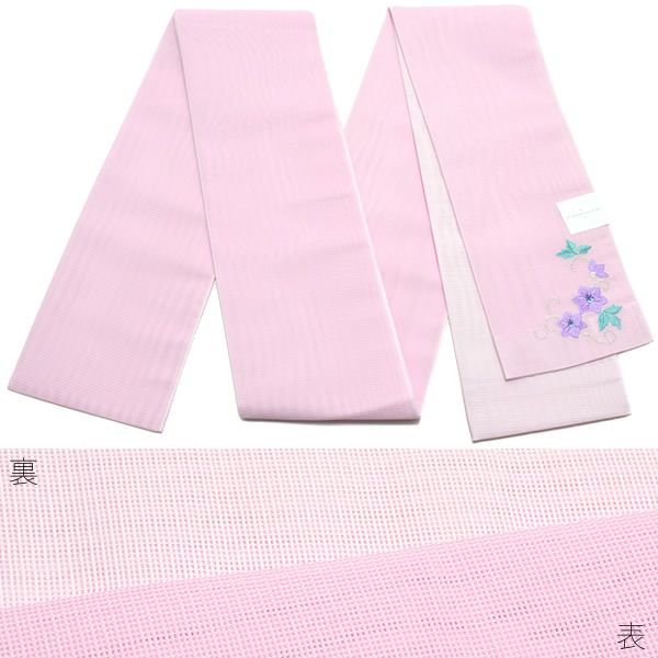 【Prices down2】夏半幅帯「ピンク 鉄線」細帯 刺繍 お仕立て上がり 四寸帯 夏帯 【メール便不可】0ss2512oyk60