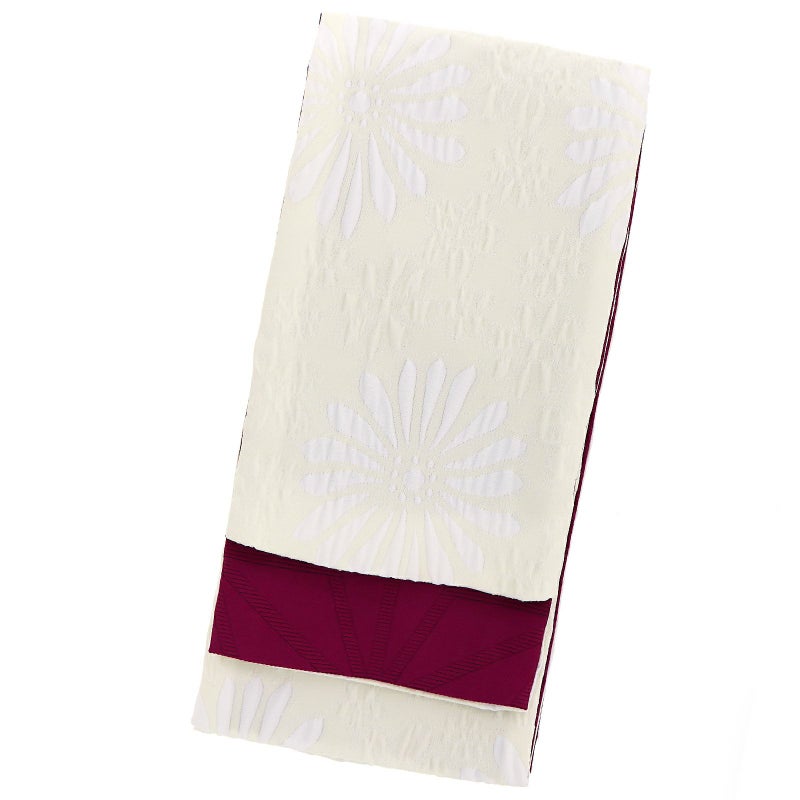 半幅帯 小袋帯 浴衣 帯 「菊 ふくれ織 白」 膨れ織り 半巾帯 リバーシブル レディース 女性用 浴衣や夏着物に 半幅帯単品 【メール便不可】<H>