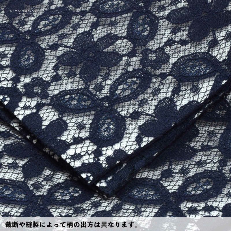 【色柄】ネイビーのチュール地に花や三つ葉がデザインされたレース。芯地は白。