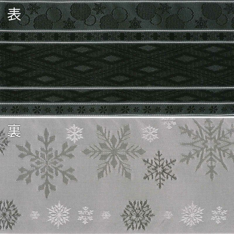 【色柄】墨黒と浅い藍墨色。白の細縞の中に菱格子文様、雪輪や雪花紋が配置された柄。裏は薄グレーの地に大小さまざまな雪の結晶紋。