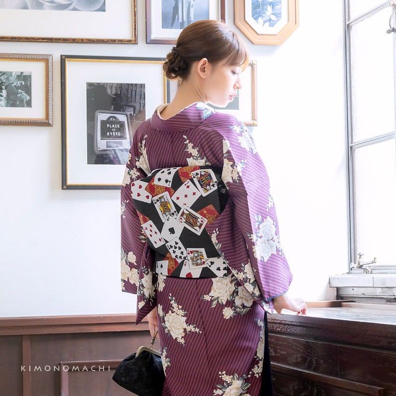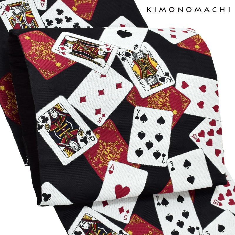 4. 京袋帯 単品 数量限定 KIMONOMACHI オリジナル 「黒 トランプ」 ポリエステル 名古屋帯 普段着着物用 京都きもの町オリジナル 日本製 【メール便不可】ss2509ong10