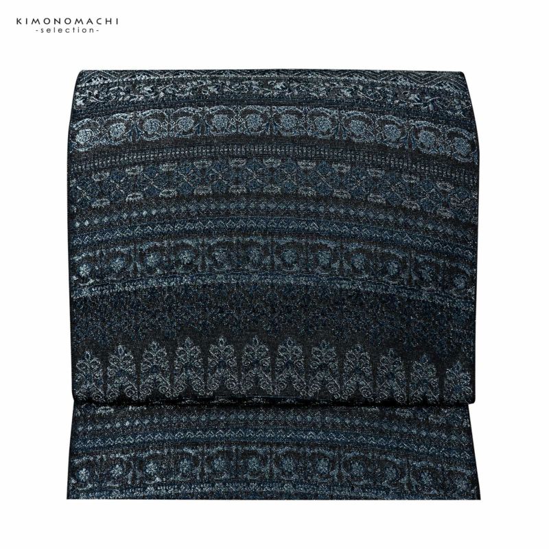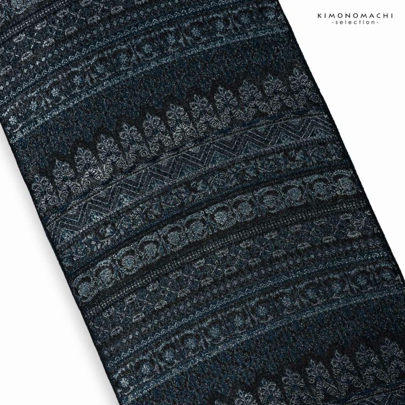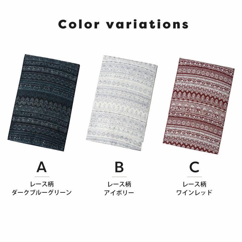 A.レース柄 ダークブルーグリーン:紺に近い濃い青緑の地に黒とシルバーグレーで花や幾何学のレース模様が横段に表現されています。