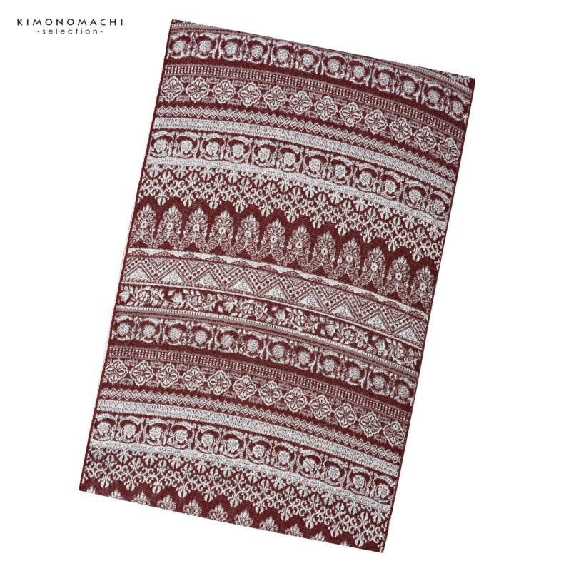 C.レース柄 ワインレッド:深い赤の地にシルバーグレーで花や幾何学のレース模様が横段に表現されています。
