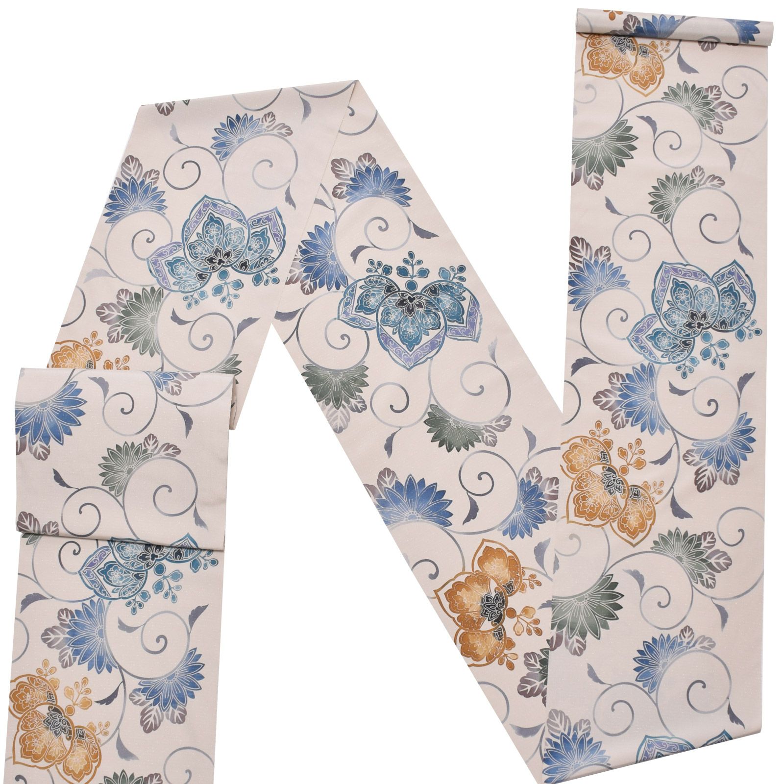 他の画像を見る 送料無料 店頭あり 型染めの本場大島紬のお洒落な名古屋帯 【Prices down2】大島染め名古屋帯 「白鼠地 薄藍花唐草」 本場大島紬 正絹帯 九寸帯 正絹名古屋帯 日本製 絹 未仕立て 新品 未使用 【メール便不可】<T>ss2512ong45 きもの町価格 ¥ 94,600 税込 カートに入れる お気に入りに登録する