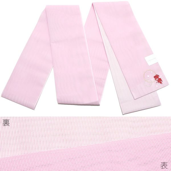 【Prices down2】夏半幅帯「ピンク 金魚」細帯 刺繍 お仕立て上がり 四寸帯 夏帯 【メール便不可】0ss2506ohs10