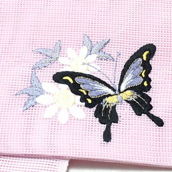 【Prices down2】夏半幅帯「ピンク 蝶」細帯 刺繍 お仕立て上がり 四寸帯 夏帯 【メール便不可】0ss2512oyk60