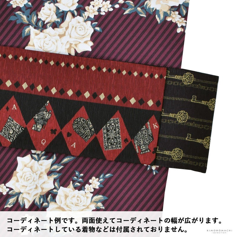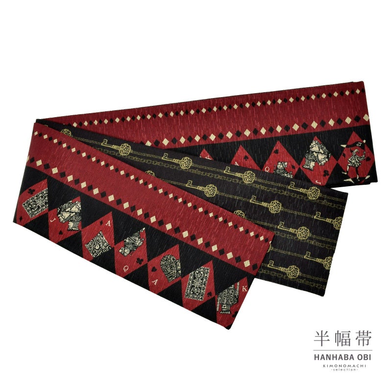 半幅帯 単品 お仕立て上がり 帯 ブランド 召しませ華「トランプ レッド」日本製 長尺 半巾帯 リバーシブル レディース 女性用 カジュアル 着物 <H>【メール便不可】