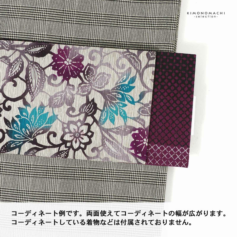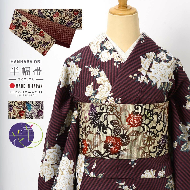 ブランド『召しませ花』のリバーシブルで使える半幅帯です。1本で2本分のコーディネートがお楽しみ頂けます。