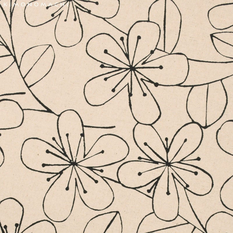 【色柄】ざっくりとした風合いのベージュの地。ペンで描かれたかのような、黒い線のお花の柄。シンプルで合わせやすく、かわいらしさのある帯です。綿ですのでしなやかで滑りにくく、お太鼓以外の変わり結びにも◎気軽に楽しんでいただける帯です。