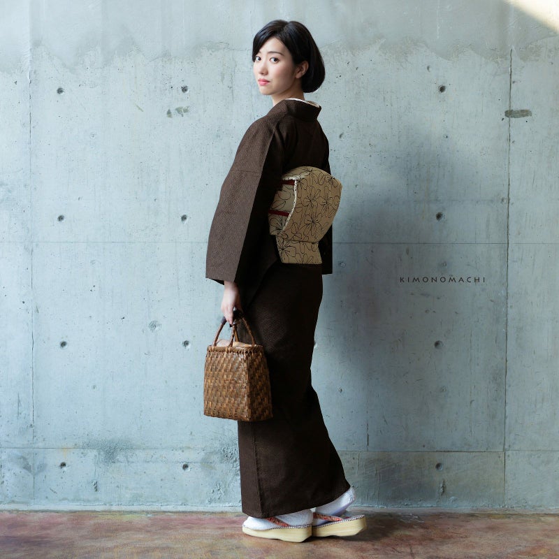 織の帯だと縦糸と横糸が交差するため、色が重なり合ってどうしても澄んだ発色にはなりずらいものです。その点、このコットン名古屋帯なら、染め特有の澄んだ濁りのないキレイなカラーを楽しむことができるようになっています。また、締めた時に滑りにくく、織じゃないので伸びてしまうということもありません。ナチュラルな風合いも、ちょこっとしたお出かけに良く似合う!京都きもの町で販売いたしております綿着物との相性も抜群の仕上がりになっています。