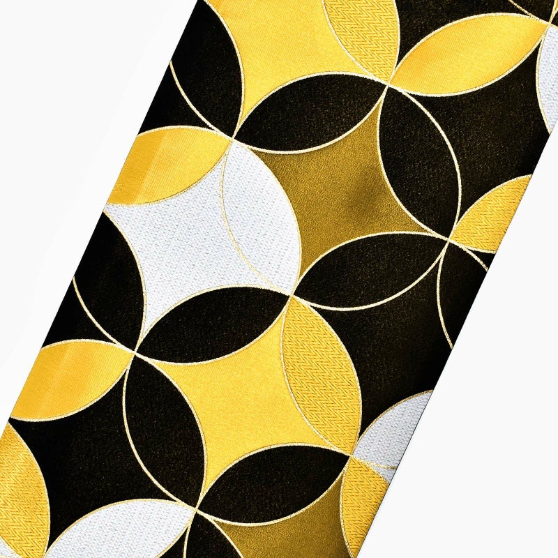 振袖袋帯「黒×ゴールド×白 モダン七宝」お仕立て上がり 振袖用 袋帯 お仕立て済 振袖帯【メール便不可】ss2412ofk10