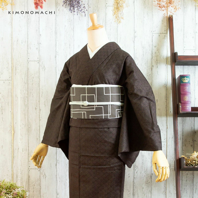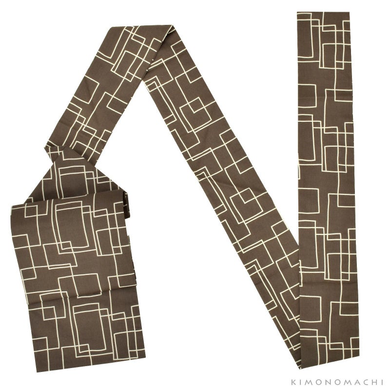 7. 木綿名古屋帯「チャコールグレー スクエア」日本製 KIMONOMACHI オリジナル 木綿帯 八寸名古屋帯 コットン名古屋帯 コットン帯 仕立て上がり帯 カジュアル 洒落帯<H>【メール便不可】