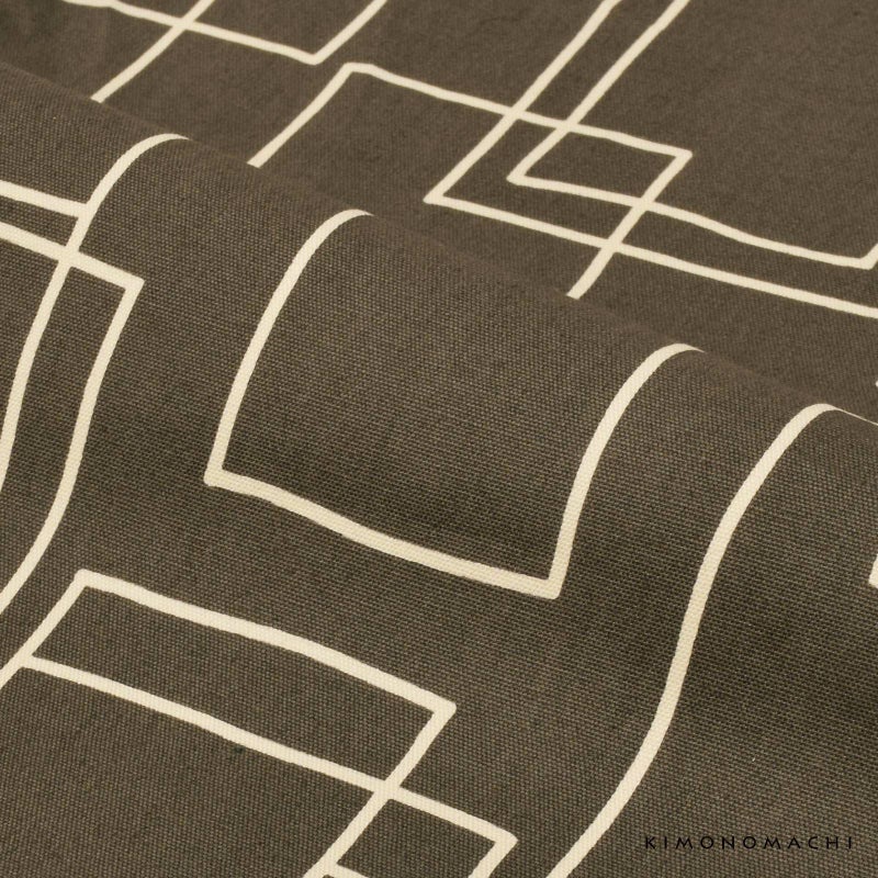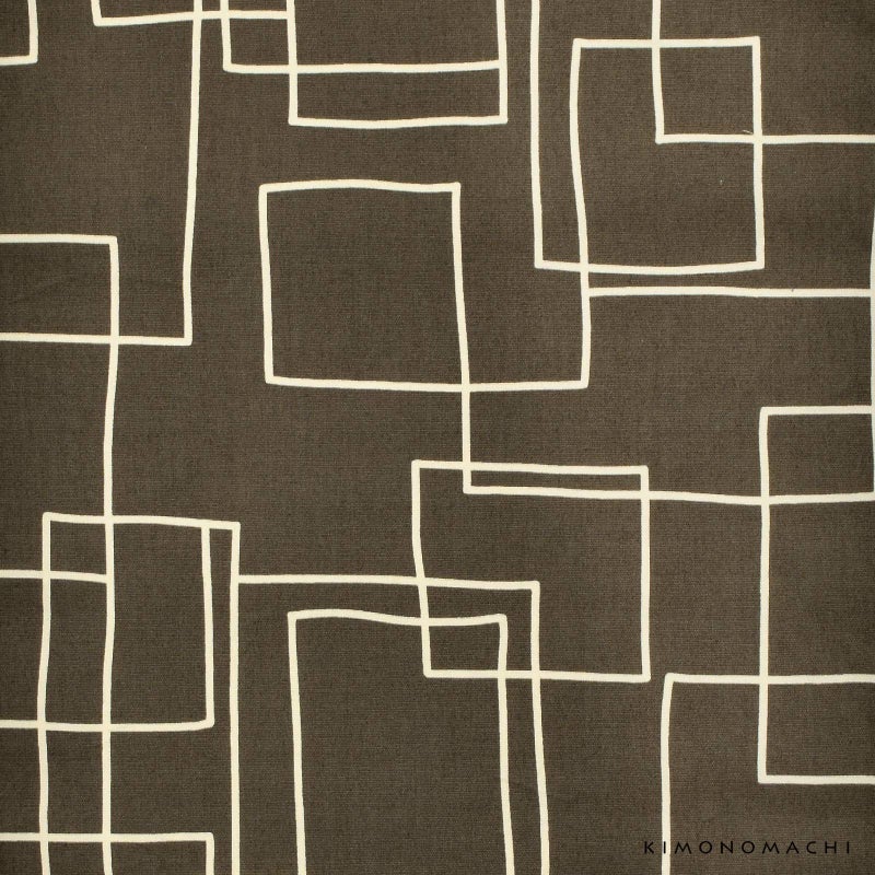 【色柄】ややグレイッシュな茶色地に、オフホワイトの手描き風のラインで表現されたランダムなスクエア柄。ゆらぎのある線がシャープになりすぎない味わいを添えています。裏は浅いアイボリー。