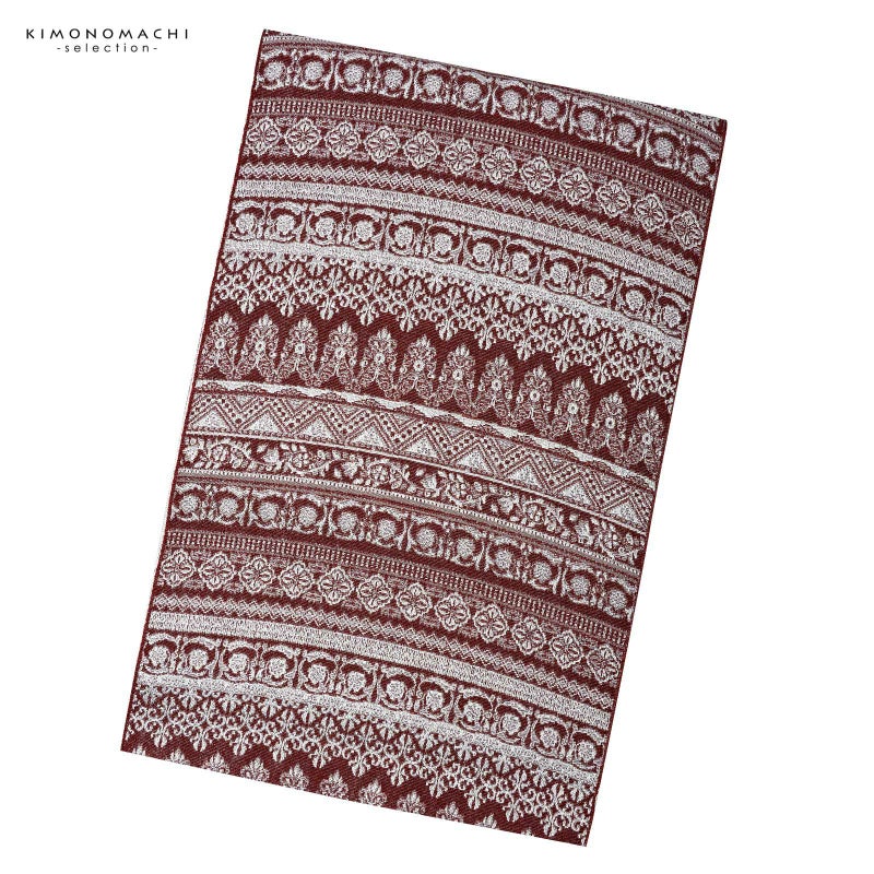 C.レース柄 ワインレッド:深い赤の地にシルバーグレーで花や幾何学のレース模様が横段に表現されています。