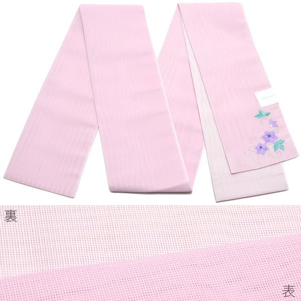 【Prices down2】夏半幅帯「ピンク 鉄線」細帯 刺繍 お仕立て上がり 四寸帯 夏帯 【メール便不可】0ss2512oyk60