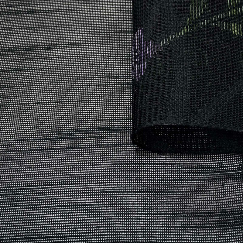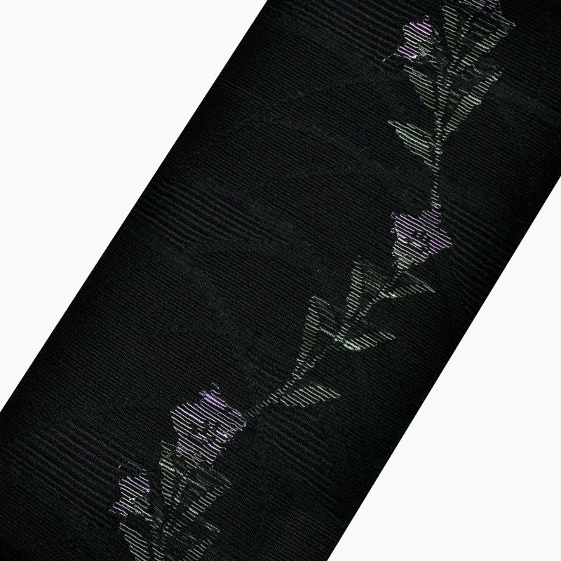 【色柄】黒の透け感のある地に、薄紫色の花、緑色の葉の桔梗が縦に流れるように表現されています。
