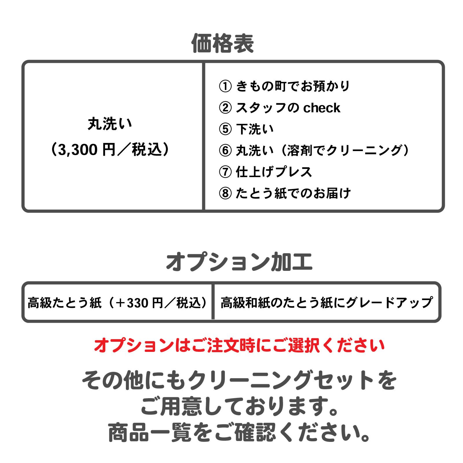 着物の種類問わず(着物1枚あたり)一律3,300円(税込)