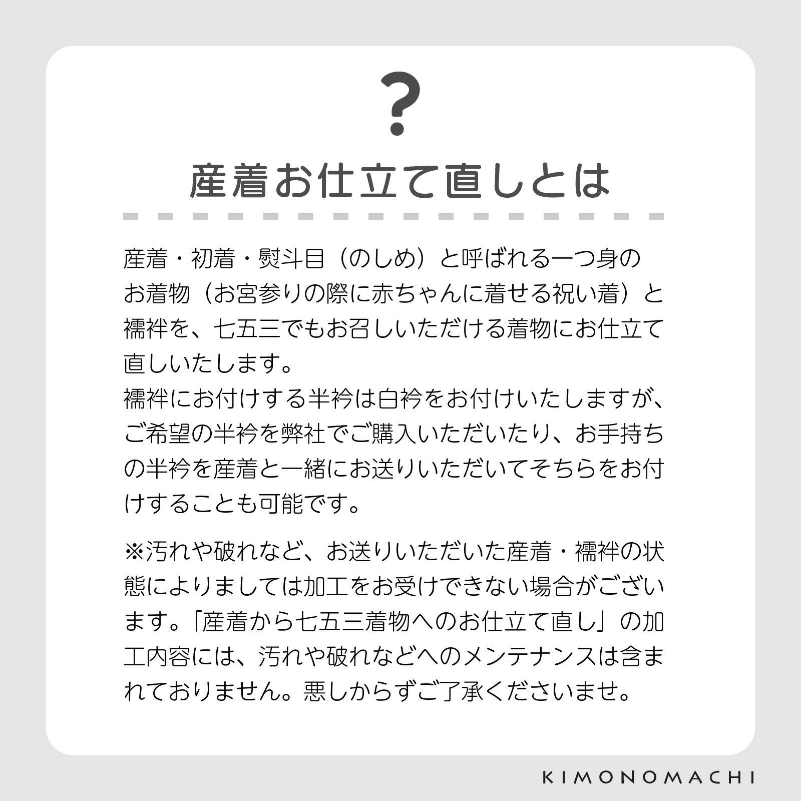 他の画像を見る お宮詣りの初着を七五三用にお直し 白半衿プレゼント 【産着仕立て直し】お宮参りの産着を七五三着物にお仕立て直し(着物・襦袢) 肩上げ・腰上げ・半衿付け 身上げ 肩あげ 腰あげ 祝い着 祝着 初着 お宮詣着 お宮参着 子供着物 三歳用着物 七五三 きもの町価格 ¥ 41,800 税込 詳細を見る お気に入りに登録する