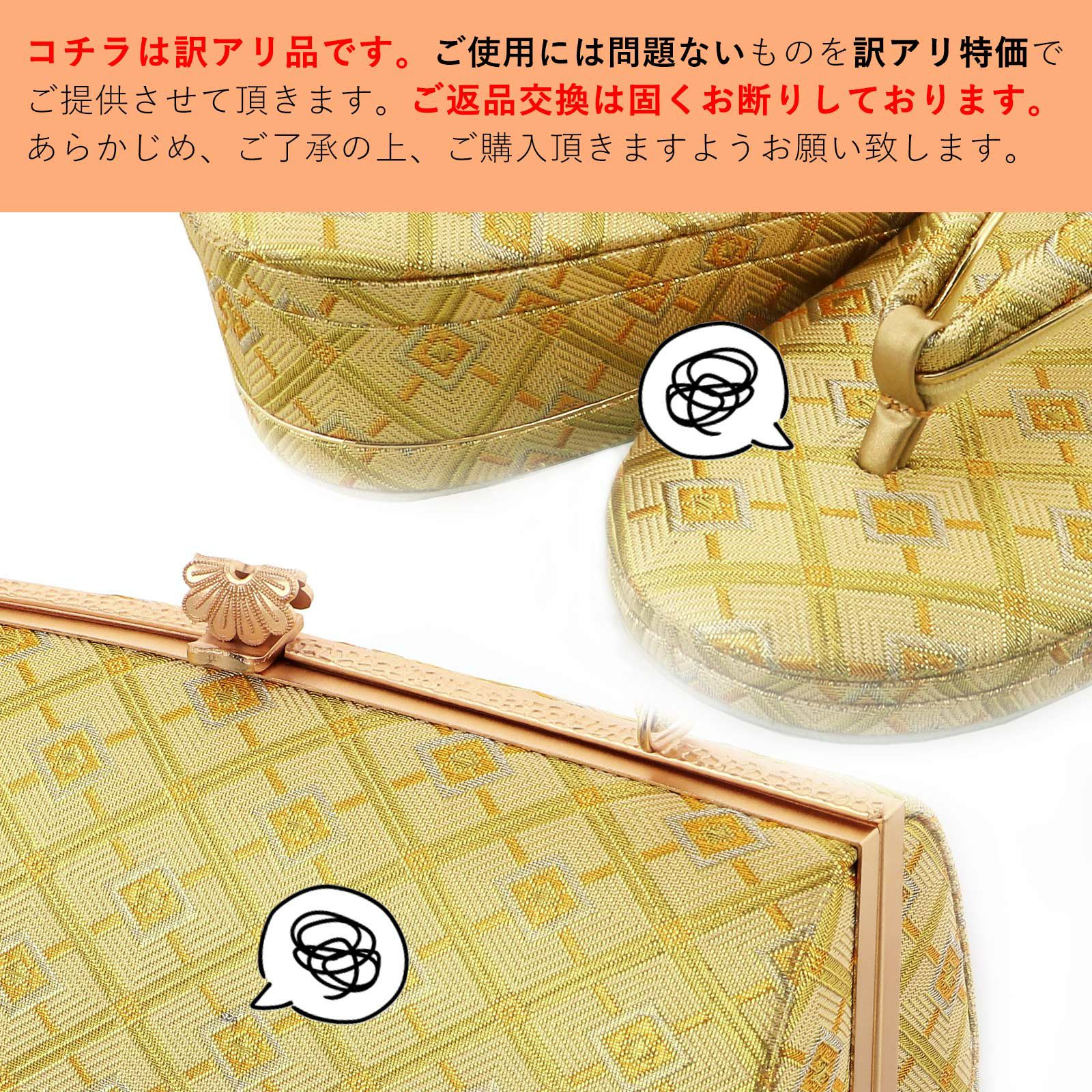 他の画像を見る 送料無料 訳あり お値打ち品 訳あり B品 大特価 訪問着、留袖に 礼装用 大人の上品なフォーマル草履バッグ 【訳アリ】礼装用 草履バッグセット ブランド 世美庵 「ゴールド 菱格子」 レディース 女性用 訪問着 留袖 Mサイズ 日本製 礼装草履バッグ 礼装バッグ 礼装草履<T>【メール便不可】 きもの町価格 ¥ 19,800 税込 在庫切れ 詳細を見る お気に入りに登録する
