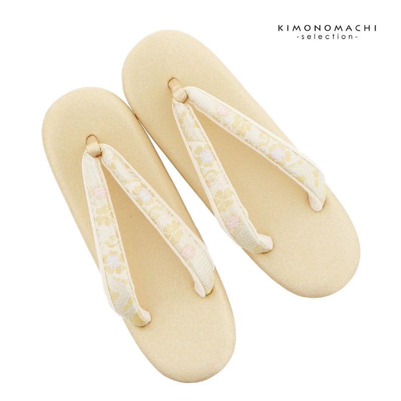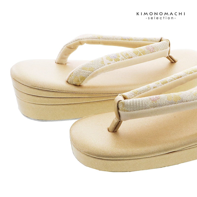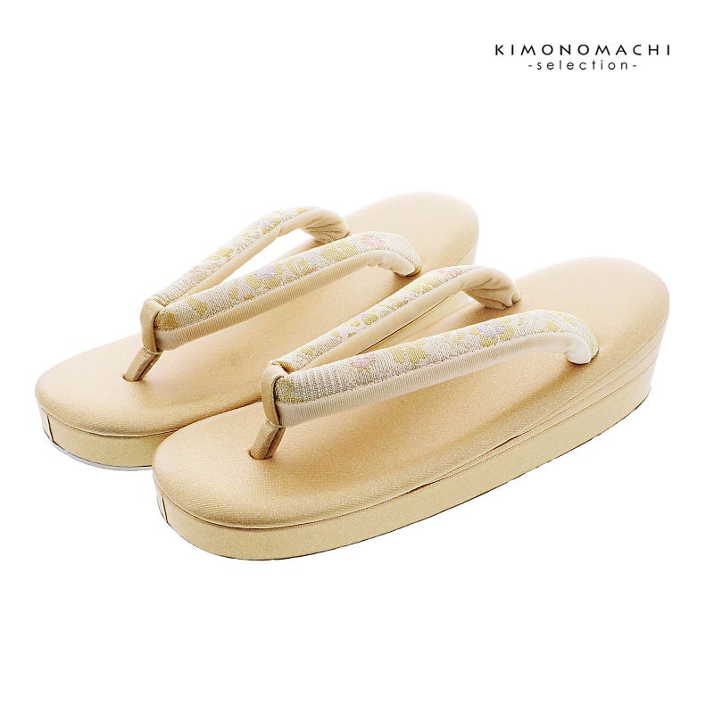 ※草履のサイズ表記について。草履のサイズは、製造メーカーによって、表記が異なる場合がございますので、きもの町では台の全長の実寸を測って、オリジナルの規定をつくっております。