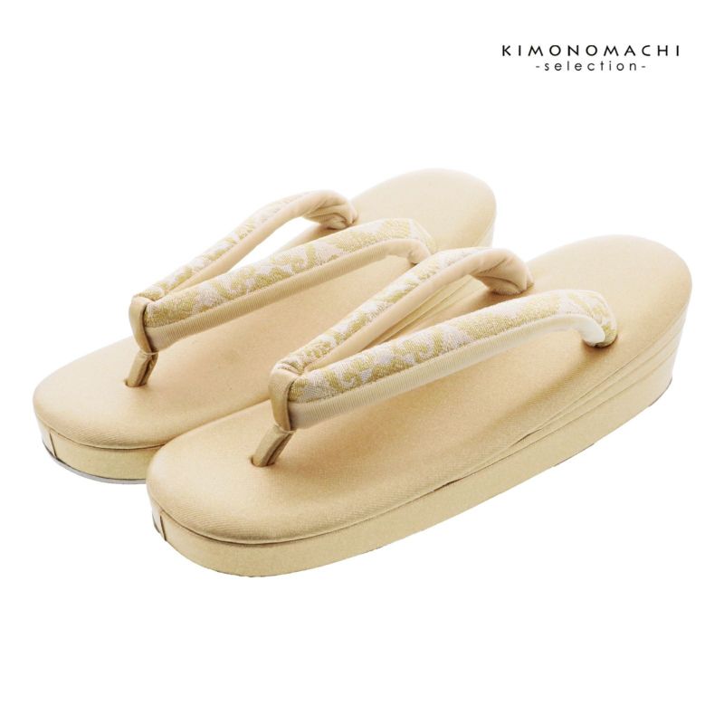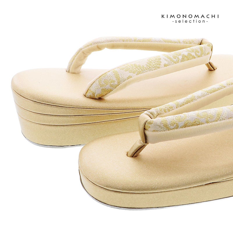 ※草履のサイズ表記について。草履のサイズは、製造メーカーによって、表記が異なる場合がございますので、きもの町では台の全長の実寸を測って、オリジナルの規定をつくっております。