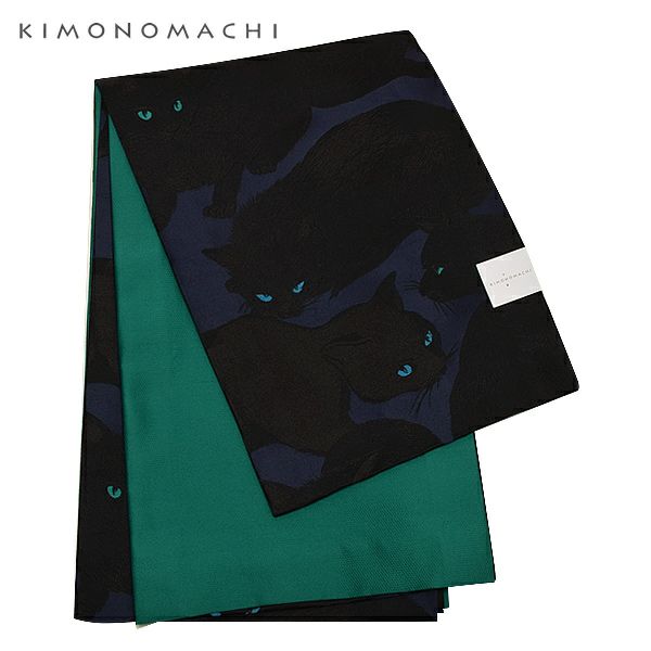 カジュアルな普段のお着物に お仕立て上がり京袋帯 お仕立て上がり京袋帯「暗闇に黒猫」全通柄 洒落帯 ポリエステル名古屋帯 カジュアル帯 【メール便不可】
