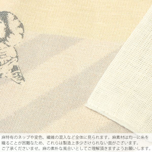 ※麻特有のネップや変色、繊維の混入など全体に見られます。麻素材は均一に糸を織ることが困難なため、これらは製造上避けられない面がございます。麻の素朴な風合いとしてお楽しみくださいませ。
