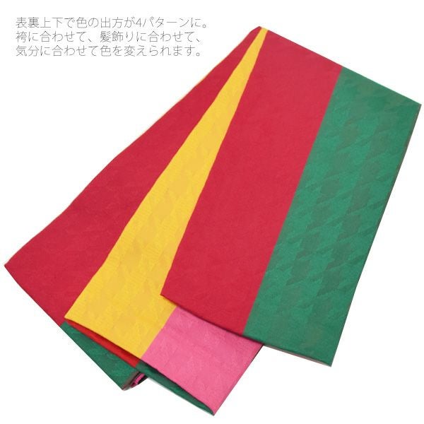 4. 【Prices down】袴下帯「千鳥」赤、緑、黄色、ピンクの4色パターン リバーシブル 袴帯 細帯 半幅帯 卒業式、謝恩会の袴に 【メール便不可】ss2512oyk10