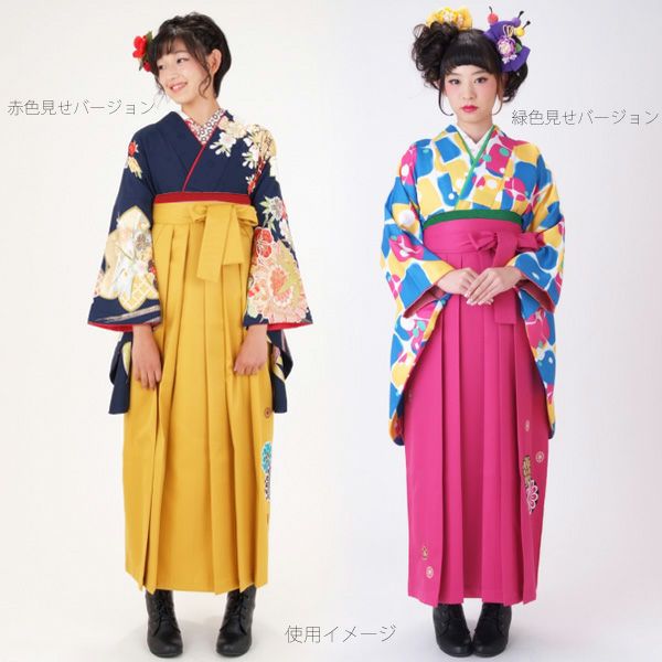 3. 【Prices down】袴下帯「千鳥」赤、緑、黄色、ピンクの4色パターン リバーシブル 袴帯 細帯 半幅帯 卒業式、謝恩会の袴に 【メール便不可】ss2512oyk10