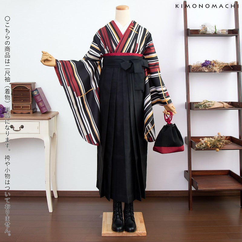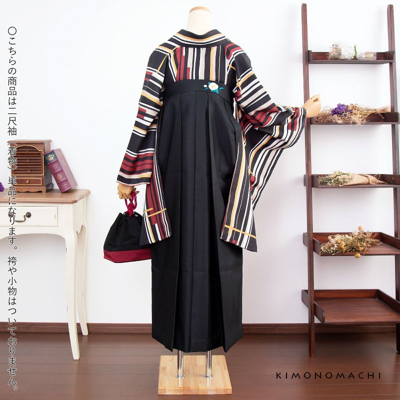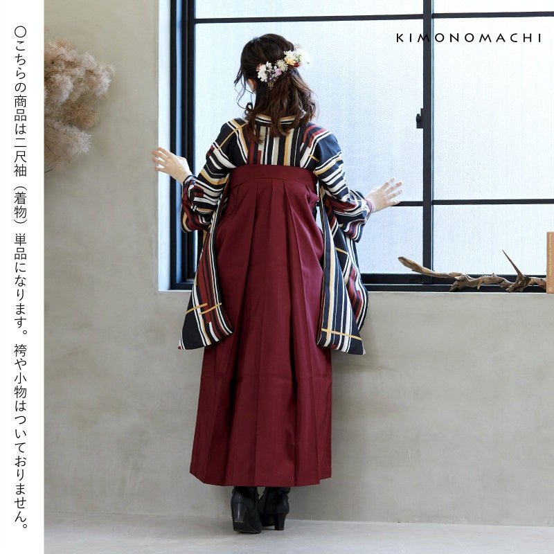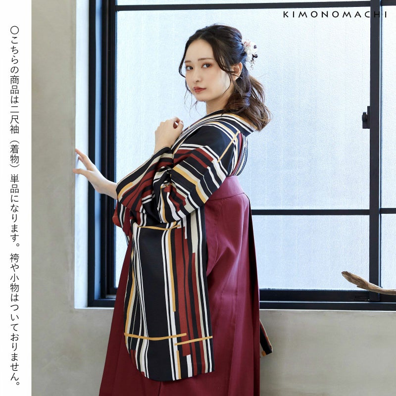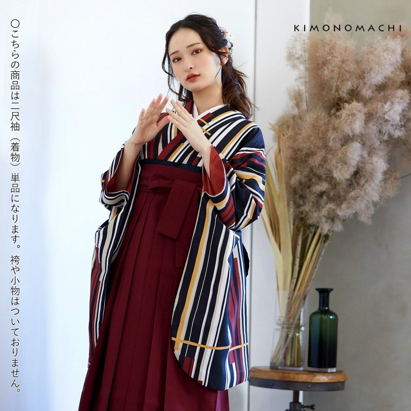 京都きもの町オリジナルブランド「KIMONOMACHI」の二尺袖着物単品です。袴と合わせて卒業式などの袴スタイルに。また身丈が通常の着物と同様の長さがございますので、袴無しで、袖が長めなアンティーク風着物としてもお召しいただけます。